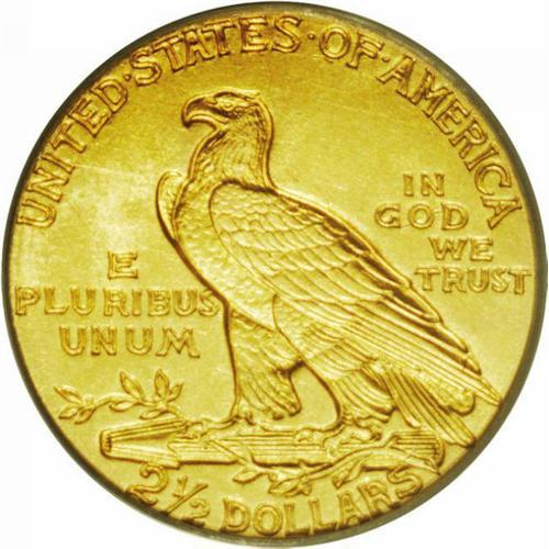 <B>1912<$2 1/2> MS63 PCGS.</B></I> Well struck, lustrous, and nearly pristine, with good color. A high-end example for the assigned grade level. The 1912, with a business strike mintage of 616,000 pieces, is one of the scarcest Philadelphia Indian Head quarter eagles, and is among the rarest dates in the series in higher Uncirculated grades.