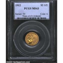 <TABLE cellSpacing=0 cellPadding=0 width="100%" bgColor=#000000 border=0><TBODY><TR><TD width="100%"><TABLE cellSpacing=1 cellPadding=3 width="100%" border=0><TBODY><TR><TD width="100%" bgColor=#79735c><FONT face=arial color=#ffffff size=3><B>Description</B> </FONT></TD></TR><TR><TD width="100%" bgColor=#ffffff><FONT face=arial size=2><B>1912 $2 1/2 MS63 PCGS.</B></I> Typically struck and satiny, with smooth orange-gold surfaces. There are a couple of minor abrasions on the reverse, while the obverse seems mark-free. </FONT></TD></TR></TBODY></TABLE></TD></TR></TBODY></TABLE><BR><A name=PricesRealized></A><TABLE cellSpacing=0 cellPadding=0 width="100%" bgColor=#000000 border=0><TBODY><TR><TD width="100%"><TABLE cellSpacing=1 cellPadding=3 width="100%" border=0><TBODY><TR><TD width="100%" bgColor=#79735c><A name=PR><FONT face=arial color=#ffffff size=3><B>Previous Prices from Heritage Auctions</B> </FONT></A></TD></TR><TR><TD bgColor=#f6f6ed><TABLE cellSpacing=0 cellPadding=0 width="100%" border=1><TBODY><TR><TD align=middle width="33%"><B>Date</B></TD><TD align=middle width="33%"><B>Service</B></TD><TD align=middle width="33%"><B>Price</B></TD></TR><TR bgColor=whitesmoke><TD width="33%"><B>10/04/2000</B></TD><TD width="33%">NGC</TD><TD width="33%">$862.50</TD></TR><TR bgColor=whitesmoke><TD width="33%"><B>10/06/2001</B></TD><TD width="33%">NGC</TD><TD width="33%">$1,380.00</TD></TR><TR bgColor=whitesmoke><TD width="33%"><B>09/17/2002</B></TD><TD width="33%">PCGS</TD><TD width="33%">$1,265.00</TD></TR><TR bgColor=whitesmoke><TD width="33%"><B>07/29/1997</B></TD><TD width="33%">PCGS</TD><TD width="33%">$753.50</TD></TR><TR bgColor=whitesmoke><TD width="33%"><B>02/03/1995</B></TD><TD width="33%">PCGS</TD><TD width="33%">$863.50</TD></TR><TR bgColor=whitesmoke><TD width="33%"><B>10/08/1994</B></TD><TD width="33%">PCGS</TD><TD width="33%">$1,320.00</TD></TR><TR bgColor=whitesmoke><TD width="33%"><B>10/01/1993</B></TD><TD width="33%">PCGS</TD><TD width="33%">$1,045.00</TD></TR><TR bgColor=whitesmoke><TD width="33%"><B>09/10/1993</B></TD><TD width="33%">PCGS</TD><TD width="33%">$1,182.50</TD></TR><TR bgColor=whitesmoke><TD width="33%"><B>10/06/2001</B></TD><TD width="33%">PCGS</TD><TD width="33%">$1,161.50</TD></TR><TR bgColor=whitesmoke><TD width="33%"><B>03/23/2003</B></TD><TD width="33%">PCGS</TD><TD width="33%">$1,840.00</TD></TR><TR bgColor=whitesmoke><TD width="33%"><B>06/18/2002</B></TD><TD width="33%">NGC</TD><TD width="33%">$1,207.50</TD></TR><TR bgColor=whitesmoke><TD width="33%"><B>04/23/1999</B></TD><TD width="33%">NGC</TD><TD width="33%">$805.00</TD></TR><TR bgColor=whitesmoke><TD width="33%"><B>09/19/2000</B></TD><TD width="33%">NGC</TD><TD width="33%">$575.00</TD></TR><TR bgColor=whitesmoke><TD width="33%"><B>10/01/1998</B></TD><TD width="33%">NGC</TD><TD width="33%">$742.50</TD></TR><TR bgColor=whitesmoke><TD width="33%"><B>04/24/1998</B></TD><TD width="33%">NGC</TD><TD width="33%">$693.00</TD></TR><TR bgColor=whitesmoke><TD width="33%"><B>09/01/1997</B></TD><TD width="33%">NGC</TD><TD width="33%">$1,045.00</TD></TR></TBODY></TABLE></TD></TR><TR><TD bgColor=#ffffff><FONT face=arial size=1 ?>PLEASE NOTE: All prices realized reflect the final hammer price PLUS the buyer's premium in auctions that charge a buyer's premium. Each item has a notation at the top of the listing indicating whether that lot included a buyer's premium. Example: A item that sells with a final hammer price of $100 and a 20% buyer's premium will display with a price realized of $120. All information listed is intended to be as accurate as possible, but errors are possible. Please use this guide carefully and inform us of any inaccuracies. </FONT></TD></TR></TBODY></TABLE></TD></TR></TBODY></TABLE><BR><TABLE cellSpacing=0 cellPadding=0 width="100%" bgColor=#000000 border=0><TBODY><TR><TD width="100%"><TABLE cellSpacing=1 cellPadding=3 width="100%" border=0><TBODY><TR><TD width="100%" bgColor=#79735c colSpan=6><FONT face=arial color=#ffffff size=3><B>Price Guide*</B> </FONT></TD></TR><TR bgColor=#f6f6ed><TD align=middle><B>Grade</B> </TD><TD align=middle><B>Coin World<BR>(Trends)</B> </TD><TD align=middle><B>Numismedia<BR>Retail</B> </TD><TD align=middle><B>Numismedia<BR>Wholesale</B> </TD><TD align=middle><B>Coin<BR>Universe</B> </TD><TD align=middle><B>Heritage<BR>Value Index</B> </TD></TR><TR bgColor=#ffffff><TD align=middle>62</TD><TD align=right>$550.00</TD><TD align=right>$425.00</TD><TD align=right>$340.00</TD><TD align=right>$360.00</TD><TD align=right>$523.88</TD></TR><TR style="FONT-WEIGHT: bold" bgColor=#cccfdd><TD align=middle>63</TD><TD align=right>$2,100.00</TD><TD align=right>---</TD><TD align=right>$1,500.00</TD><TD align=right>$1,750.00</TD><TD align=right>$1,522.50</TD></TR><TR bgColor=#ffffff><TD align=middle>64</TD><TD align=right>$2,350.00</TD><TD align=right>---</TD><TD align=right>$1,825.00</TD><TD align=right>$2,250.00</TD><TD align=right>$1,922.50</TD></TR><TR bgColor=#ffffff><TD colSpan=6><FONT size=1>*All information listed is intended to be as accurate as possible, but errors are possible. No item may be returned or refused based on this information which is provided as a service to our customers. You should contact each pricing source directly to determine the accuracy of this information. </FONT></TD></TR></TBODY></TABLE></TD></TR></TBODY></TABLE><BR><TABLE cellSpacing=0 cellPadding=0 width="100%" bgColor=#000000 border=0><TBODY><TR><TD width="100%"><TABLE cellSpacing=1 cellPadding=3 width="100%" border=0><TBODY><TR><TD width="100%" bgColor=#79735c><FONT face=arial color=#ffffff size=3><B>Population Guide</B> </FONT></TD></TR><TR bgColor=#ffffff><TD align=middle><!-- Begin Output of Population Grid--><TABLE cellSpacing=0 cellPadding=0 width="100%" border=0><TBODY><TR><TD vAlign=center><TABLE cellSpacing=0 width="100%" border=1 cellsadding="3"><TBODY><TR><TD vAlign=center><TABLE cellSpacing=0 cellPadding=3 width="100%" border=1><TBODY><TR><TD vAlign=center align=middle bgColor=#f0f1