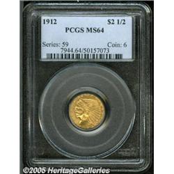 <B>1912 $2 1/2 MS64 NGC.</B></I> Full, pinpoint striking details throughout with smooth, lustrous surfaces that are relatively undisturbed by the abrasions that usually plague this issue.