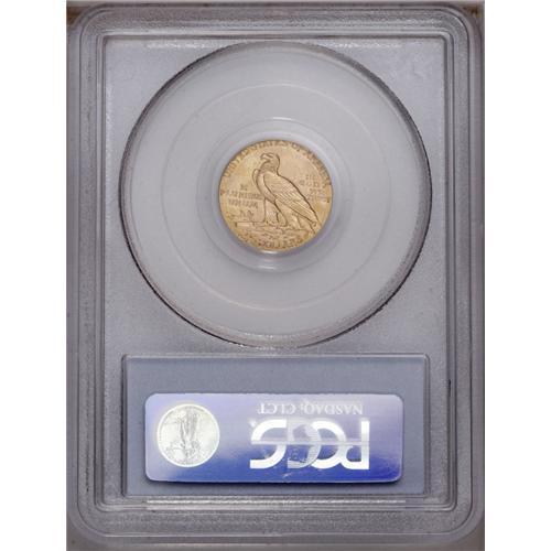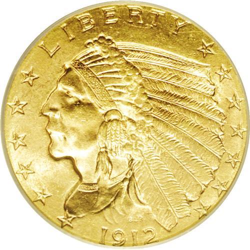 <B>1912<$2 1/2> MS65 PCGS.</B></I> The 1912, with a business strike mintage of 616,000 pieces, is one of the scarcest Philadelphia Indian Head quarter eagles, and is among the rarest dates in the higher Uncirculated grades. A precipitous drop in the certified population is noted between the near and full Gem categories, from just less than 700 specimens in MS64 to about 80 coins in MS65. This is reflected in nearly a four-fold increase in price for a full Gem coin.<BR> The MS65 coin offered in this lot is sharply struck, even in the centers, which are sometimes weak on this issue. The hair at the Indian's temple is nicely (though not quite fully) delineated, as are the eagle's feathers. The luster is somewhat more vibrant than usually seen, making this a highly desirable piece. Light abrasions are noted on the Indian's cheek, and minor handling marks occur in the raised, exposed fields, especially in those of the upper reverse. None of these are as bad as typically found on this normally abraded issue. Orange-gold patination imbued with subtle lime-green accents bathes both sides. Population: 45 in 65, 5 finer (1/06).