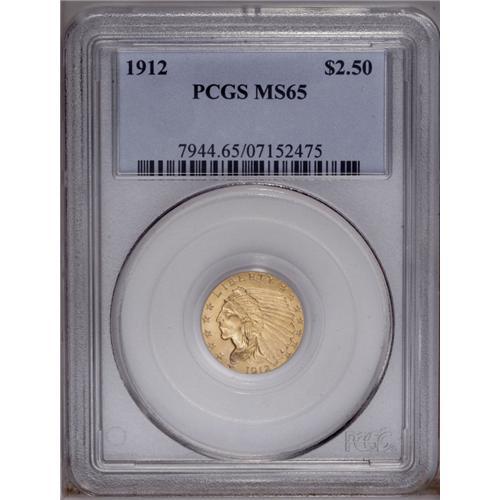 1912 $2 1/2 MS65 PCGS. The 1912, with a business strik 1912[$2 1/2] MS65 PCGS.