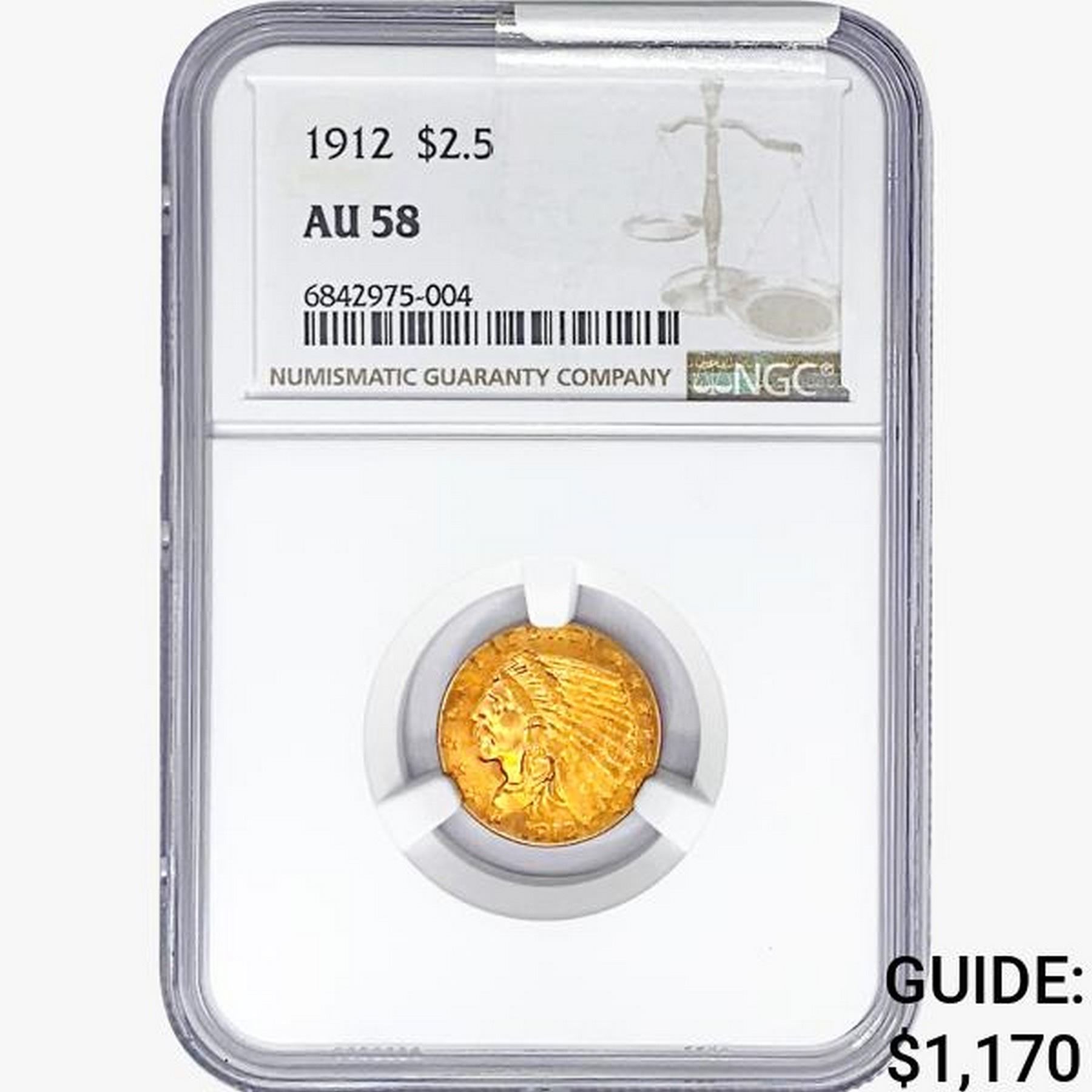 1912 $2.50 Gold Quarter Eagle NGC AU58