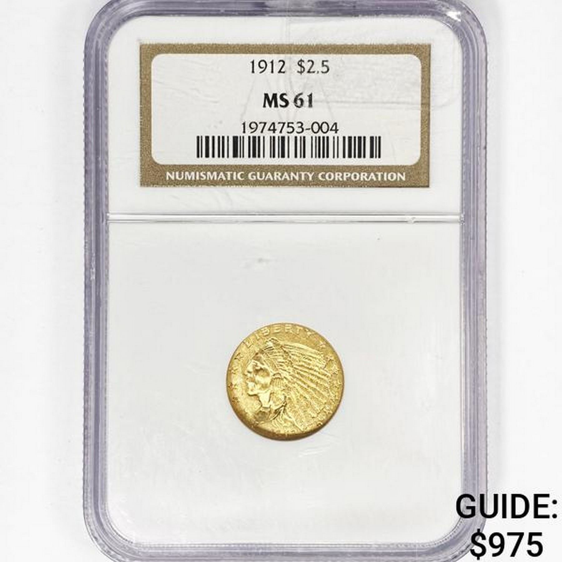 1912 $2.50 Gold Quarter Eagle NGC MS61