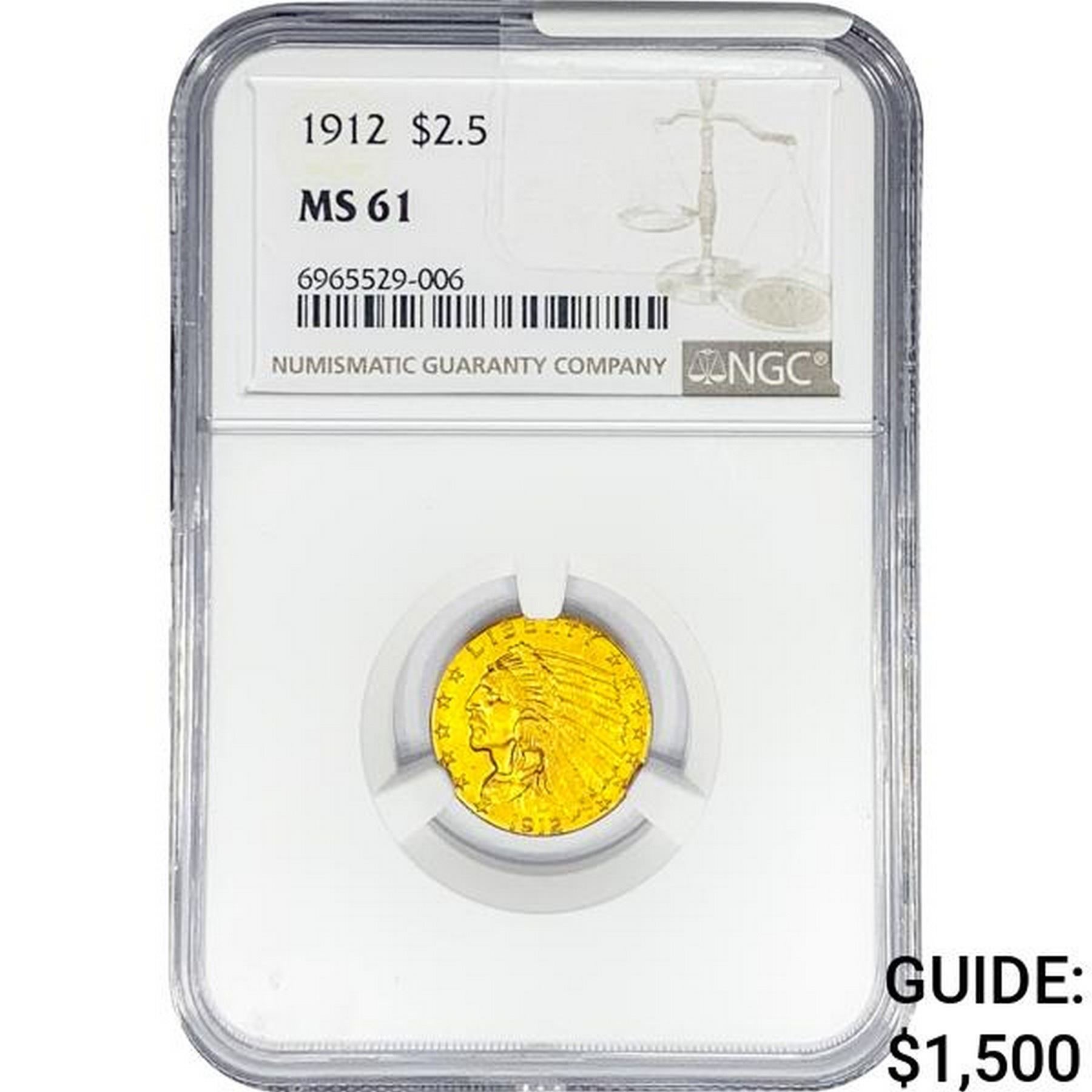 1912 $2.50 Gold Quarter Eagle NGC MS61