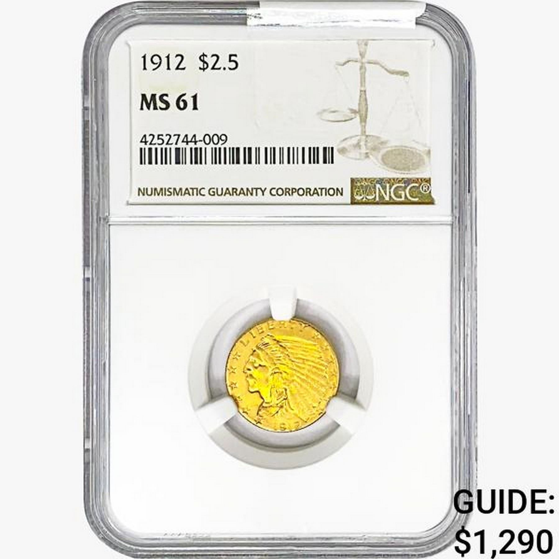 1912 $2.50 Gold Quarter Eagle NGC MS61