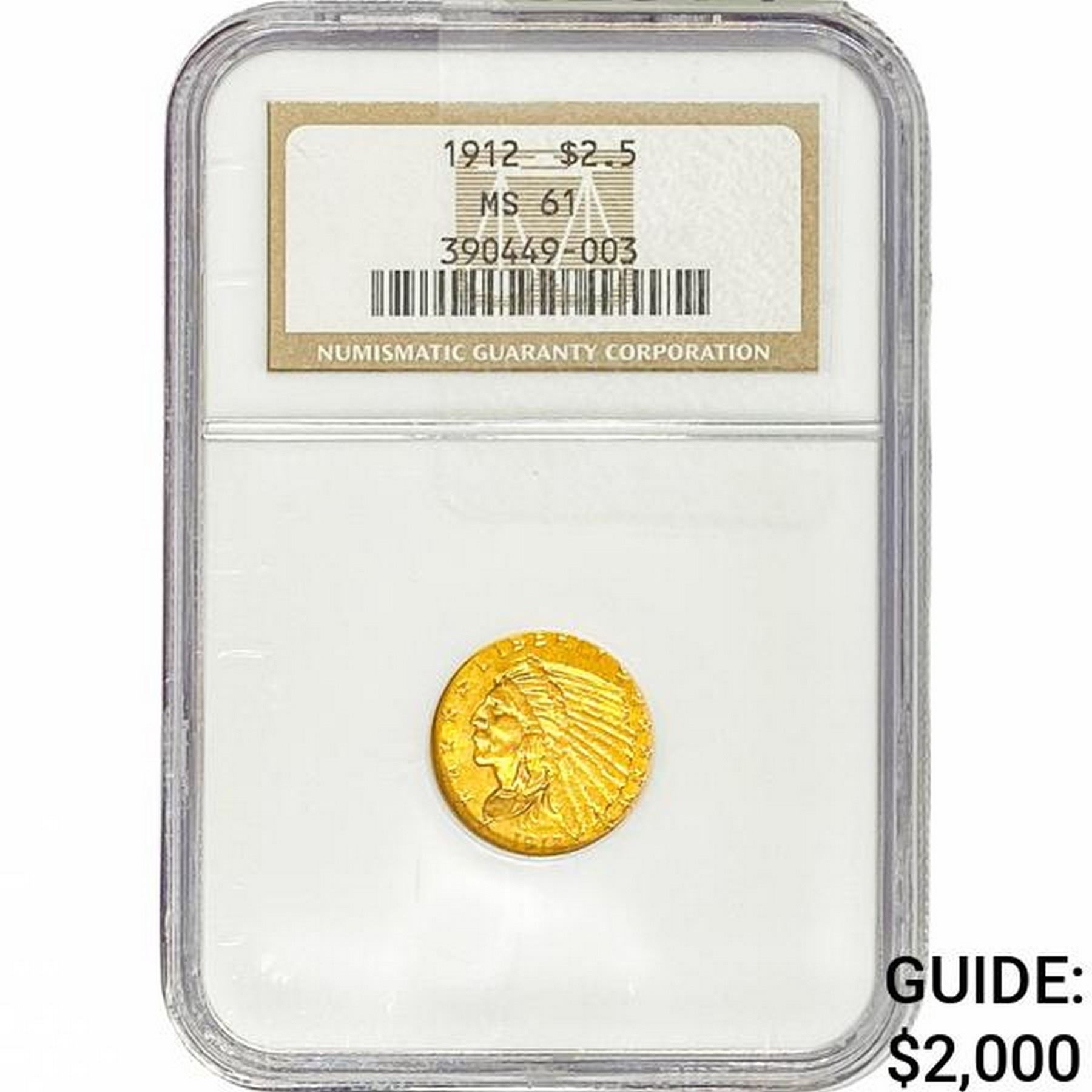 1912 $2.50 Gold Quarter Eagle NGC MS61