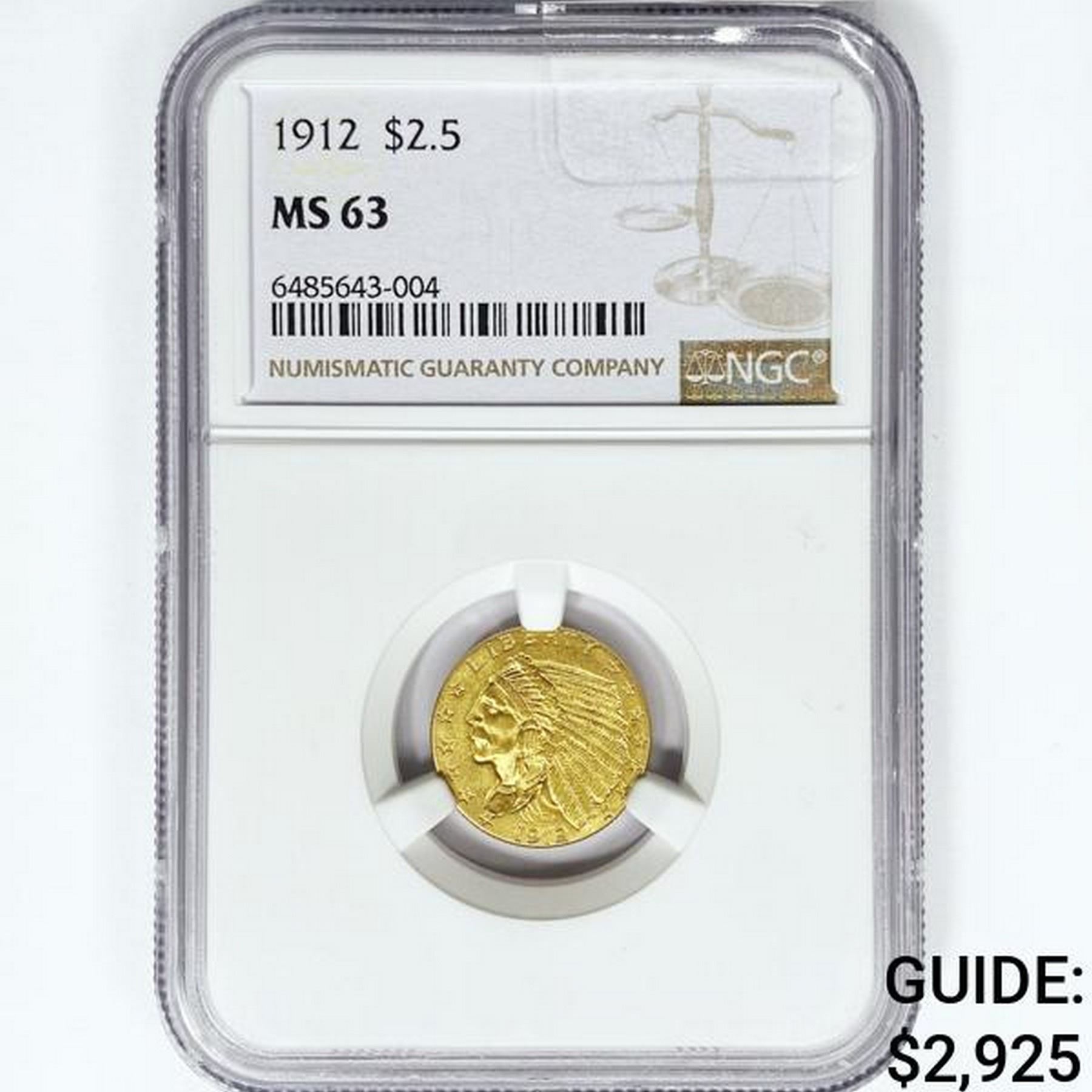 1912 $2.50 Gold Quarter Eagle NGC MS63