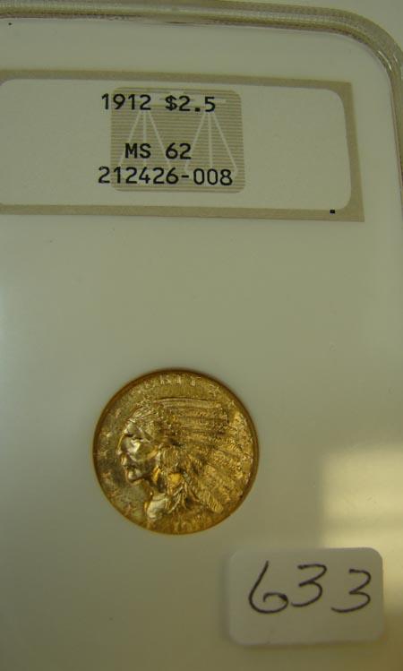 1912 $2.50 Indian Head Gold Coin NGC MS62