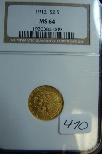1912 $2.50 Indian Head Gold Coin NGC MS64