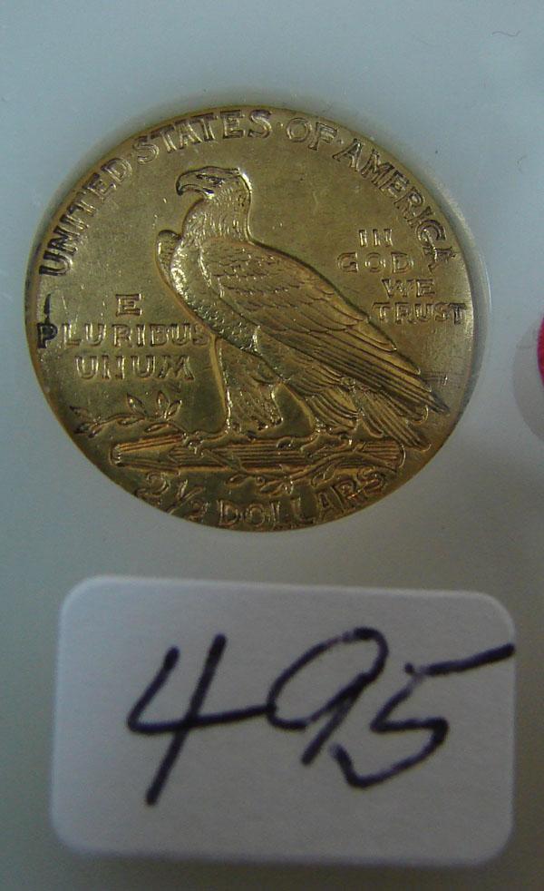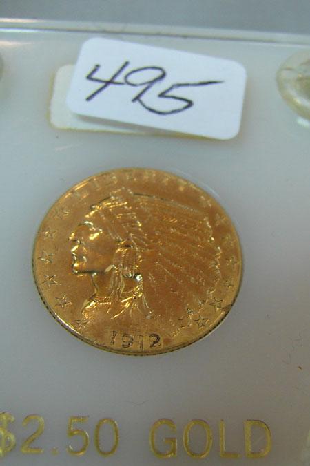 1912 $2.50 Indian Head Gold Coin XF Cleaned