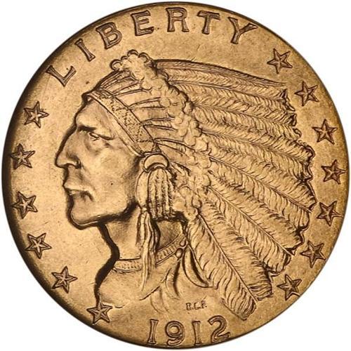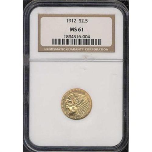 <b>1912 $2.50 Indian. NGC graded MS61.</b> NGC Pop: 1089. Lustrous brilliant golden color with not toning patina <b>(PCGS # 7944)</b> <i>