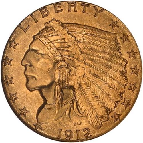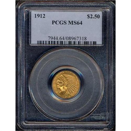 <b>1912 $2.50 Indian. PCGS graded MS64.</b> PCGS Pop: 327. A very frosty example of this slightly better issue. Nicer than average surfaces, too <b>(PCGS # 7944)</b> <i>