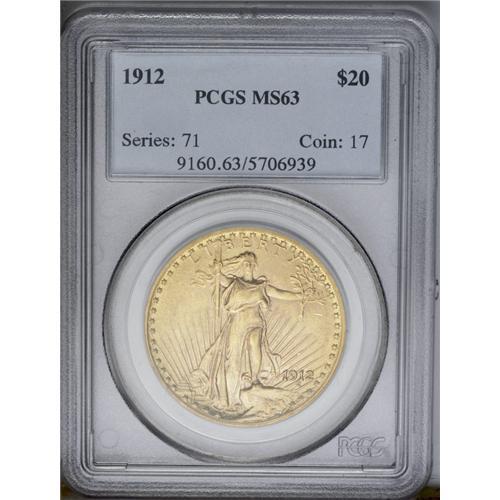 <B>1912<$20> MS63 PCGS.</B></I> A Select and highly lustrous example with honey-wheat surfaces. Well struck with light, scattered abrasions that prevent a higher grade.