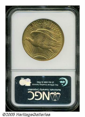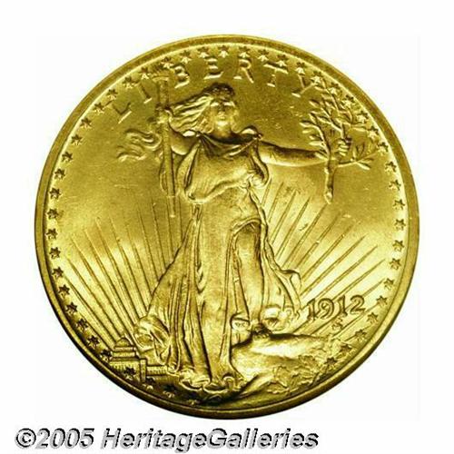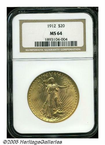 <B>1912<$20> MS64 NGC.</B></I> A scarcer P-mint Saint that is almost invariably seen with rather drab luster and heavy abrasions. This Choice example has a couple of minor marks and a little striking flatness, but its color and luster are exceptional for the issue.