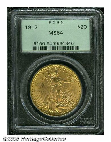 1912 $20 MS64 PCGS. Well struck, a couple of unfo