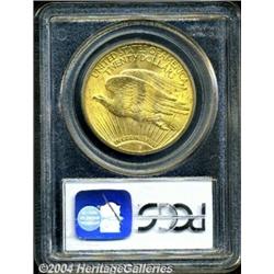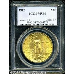 <B>1912<$20> MS64 PCGS.</B></I> Richly frosted beneath orange-gold patination, scattered light abrasions and several noticeable hits on the obverse account for this piece's Choice Mint State grade. <BR><BR><B>Important notice:</B> Heritage usually auctions material at the rate of 200-250 lots per hour. On some occasions eBay Live bid software or the Internet may not be able to keep up with the pace of the auction. We recommend placing a realistic absentee bid now as insurance to avoid disappointment. Occasionally the auctioneer may eliminate or reject an eBay Live bid, and the auctioneer may also reopen a lot after the close of the eBay live bidding (usually because we missed an audience bid), and may reject your bid even if it shows you as the winning bidder. By bidding via eBay Live, you agree that Heritage may award the lot to another bidder at its sole discretion under the circumstances described above or any other reasonable circumstances. Since eBay bids are not shown to us until we open the lot on the floor, we treat those bids just like floor bids. In most cases the floor responds before the eBay bid is presented to us, due to Internet lag time, so for consistency we have made it a policy that floor bids are always considered first over tie eBay live bids. Also please note that all Heritage lots purchased through eBay Live carry a 20% Buyer's Premium. Please make sure you read the Terms and Conditions before you bid. </span></font></tr></table></td></tr></table>