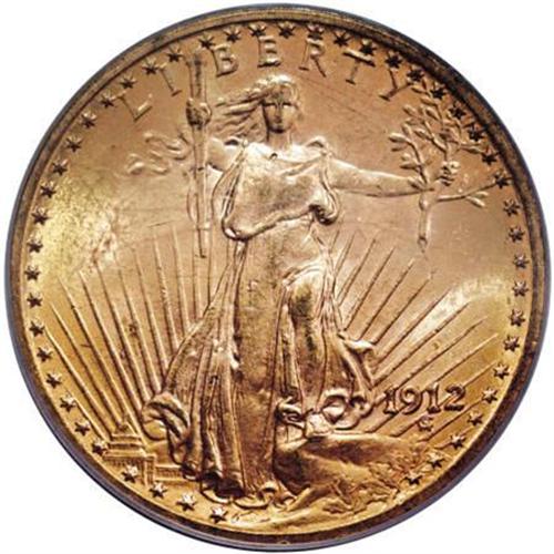 <B>1912 $20 MS64 PCGS.</B></I> Technically, the 1912 double eagle is a new type created by the addition of two stars placed below the date near the oak leaves. This was done to represent the addition of New Mexico and Arizona to the Union. Apricot-gold luster radiates from both sides of this near-Gem, and a well executed strike defines the design elements. Scattered light marks limit the grade.<BR><BR><B>Coin Engraver:</B> Augustus Saint-Gaudens<BR><BR><b>Shipping:</b> Coins & Currency (<a target="_blank" href="http://www.heritageauctions.com/common/shipping.php">view shipping information</a>)
