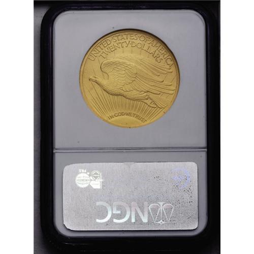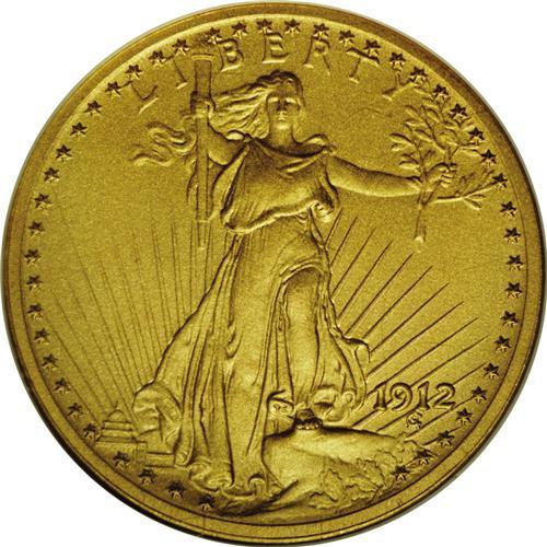 <B>1912<$20> PR67 NGC.</B></I> The mintage of matte proof double eagles was limited to just 74 pieces in the year when the Bull Moose party almost won the White House. Extant specimens in any grade are roughly comparable to the 1911 and the other dates of the series except for the slightly more obtainable 1908. Past estimates of the number of survivors have varied from 15 to 25 pieces, but the more comprehensive data available today bumps the total to somewhere between 30 and 40 coins. The number of resubmissions for 1912 matte proof twenties is understandably high, considering the financial stakes involved.<BR> The finish of this piece is also similar to that found on the 1911, only that it is a couple of shades lighter in hue. Magnification shows myriad tiny sparkling facets from the sandblast-like surfaces. The surfaces are essentially perfect with the only mentionable post-striking disturbance being a pair of tiny shiny spots on the upper tip of the eagle's forewing. Breathtaking eye appeal in this very rare gold proof.