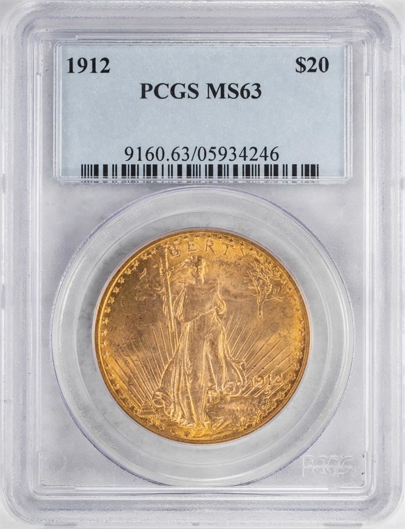 One 1912 $20 St. Gaudens Double Eagle Gold Coin PCGS MS63. PCGS Graded.