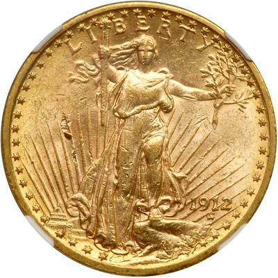 1912 $20 St. Gaudens. Obverse planchet flaw (PCGS # 9160) .