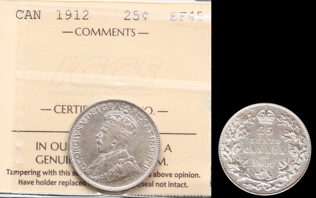 1912 25¢ ICCS Choice Extra Fine-45 Lustrous.