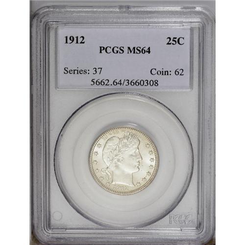 1912 25C MS64 PCGS. A frosty, essentially snow-white e 1912[25C] MS64 PCGS.