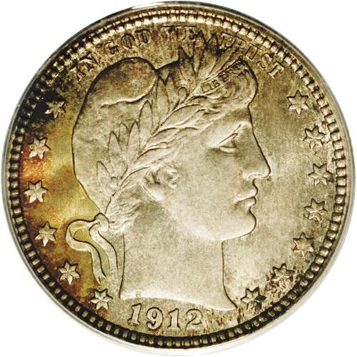 "1912 25C MS66 PCGS. Dove-gray, orange-r"
