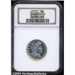 <B>1912<25C> PR65 Cameo NGC.</B></I> Fully struck and seemingly pristine, with dynamically reflective fields and stunning white-on-black contrast on both sides. Untoned save for a small amount of milky patina on the reverse. Population: 6 in 65 Cameo, 8 finer (4/04). <BR><BR><B>Important notice:</B> Heritage usually auctions material at the rate of 200-250 lots per hour. On some occasions eBay Live bid software or the Internet may not be able to keep up with the pace of the auction. We recommend placing a realistic absentee bid now as insurance to avoid disappointment. Occasionally the auctioneer may eliminate or reject an eBay Live bid, and the auctioneer may also reopen a lot after the close of the eBay live bidding (usually because we missed an audience bid), and may reject your bid even if it shows you as the winning bidder. By bidding via eBay Live, you agree that Heritage may award the lot to another bidder at its sole discretion under the circumstances described above or any other reasonable circumstances. Since eBay bids are not shown to us until we open the lot on the floor, we treat those bids just like floor bids. In most cases the floor responds before the eBay bid is presented to us, due to Internet lag time, so for consistency we have made it a policy that floor bids are always considered first over tie eBay live bids. Also please note that all Heritage lots purchased through eBay Live carry a 20% Buyer's Premium. Please make sure you read the Terms and Conditions before you bid.