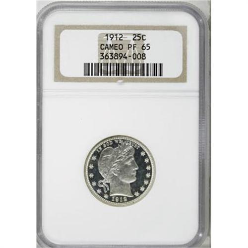 <B>1912 25C PR65 Cameo NGC.</B></I> Crisply struck and seemingly pristine, with dynamically reflective fields and stunning white-on-black contrast on both sides. Untoned save for a small amount of milky patina on the reverse. Census: 11 in 65 Cameo, 13 finer (12/07).<BR><BR><b>Shipping:</b> Coins & Currency (<a target="_blank" href="http://www.heritageauctions.com/common/shipping.php">view shipping information</a>)