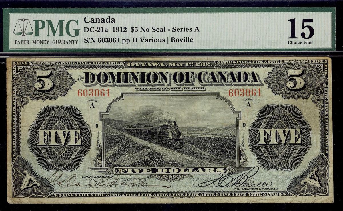 1912 $5 DC-21a #603061 PCGS F15. Scarce and seldom offered.