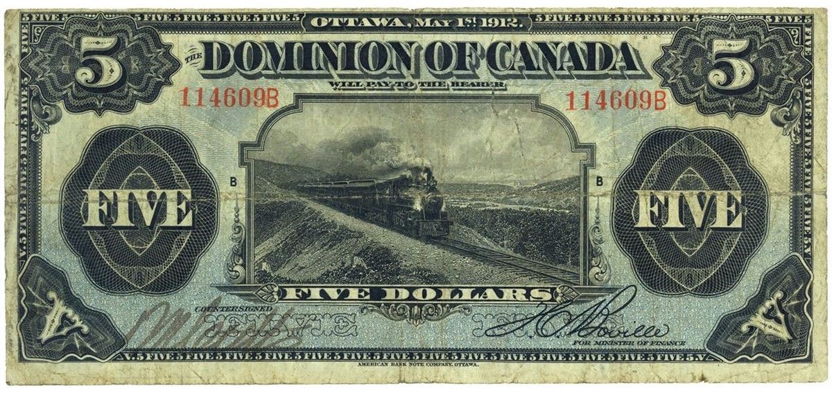 1912 $5 DC-21b #114609B, PMG VF20.