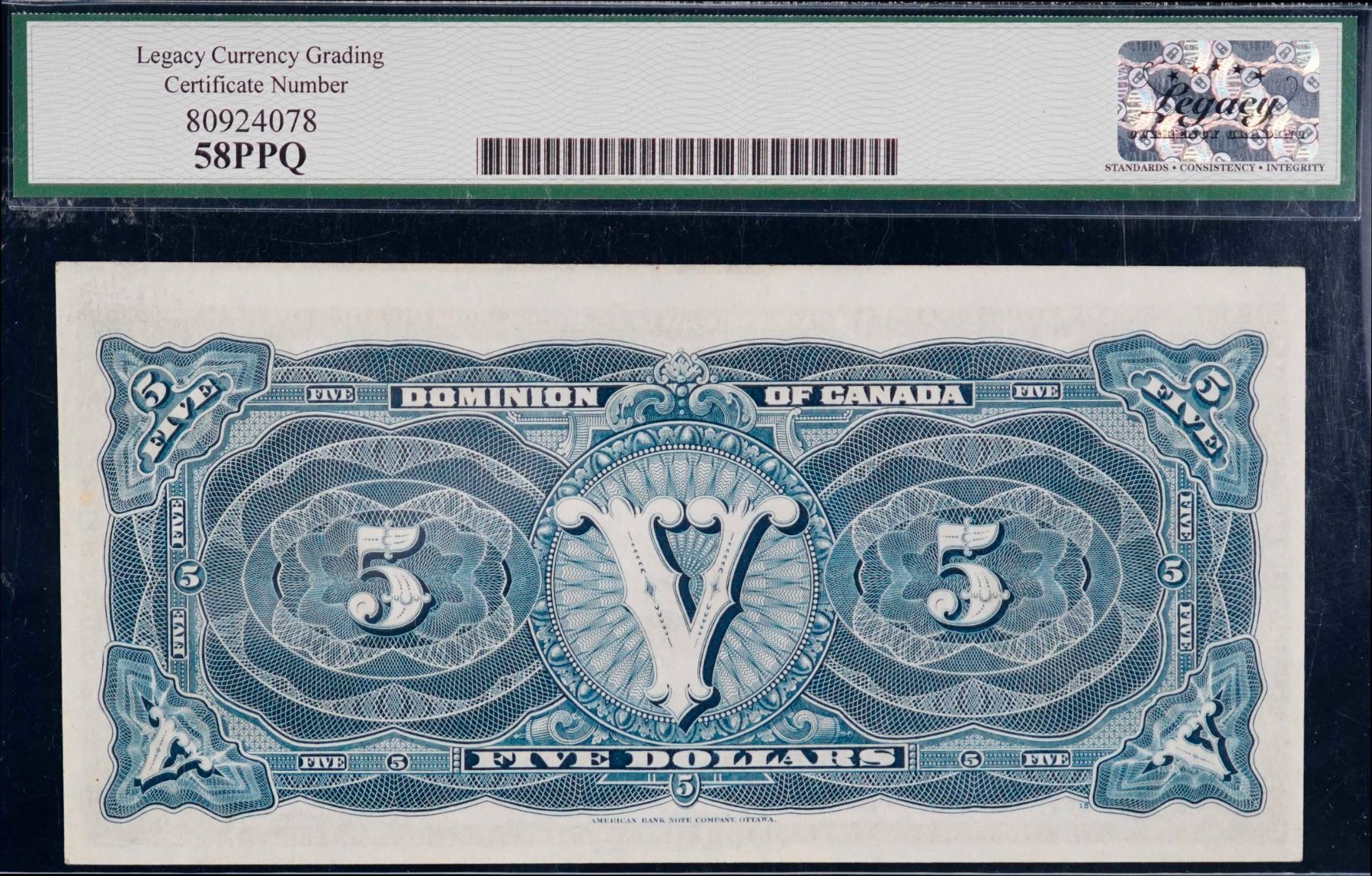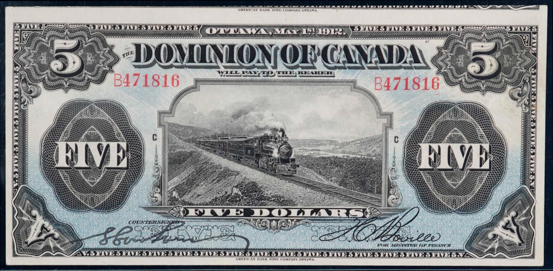 1912 $5 DC-21c #B471816 series "Letter B before S\N LCG Choice About Uncirculated-58PPQ. Ultra bright with great colours.