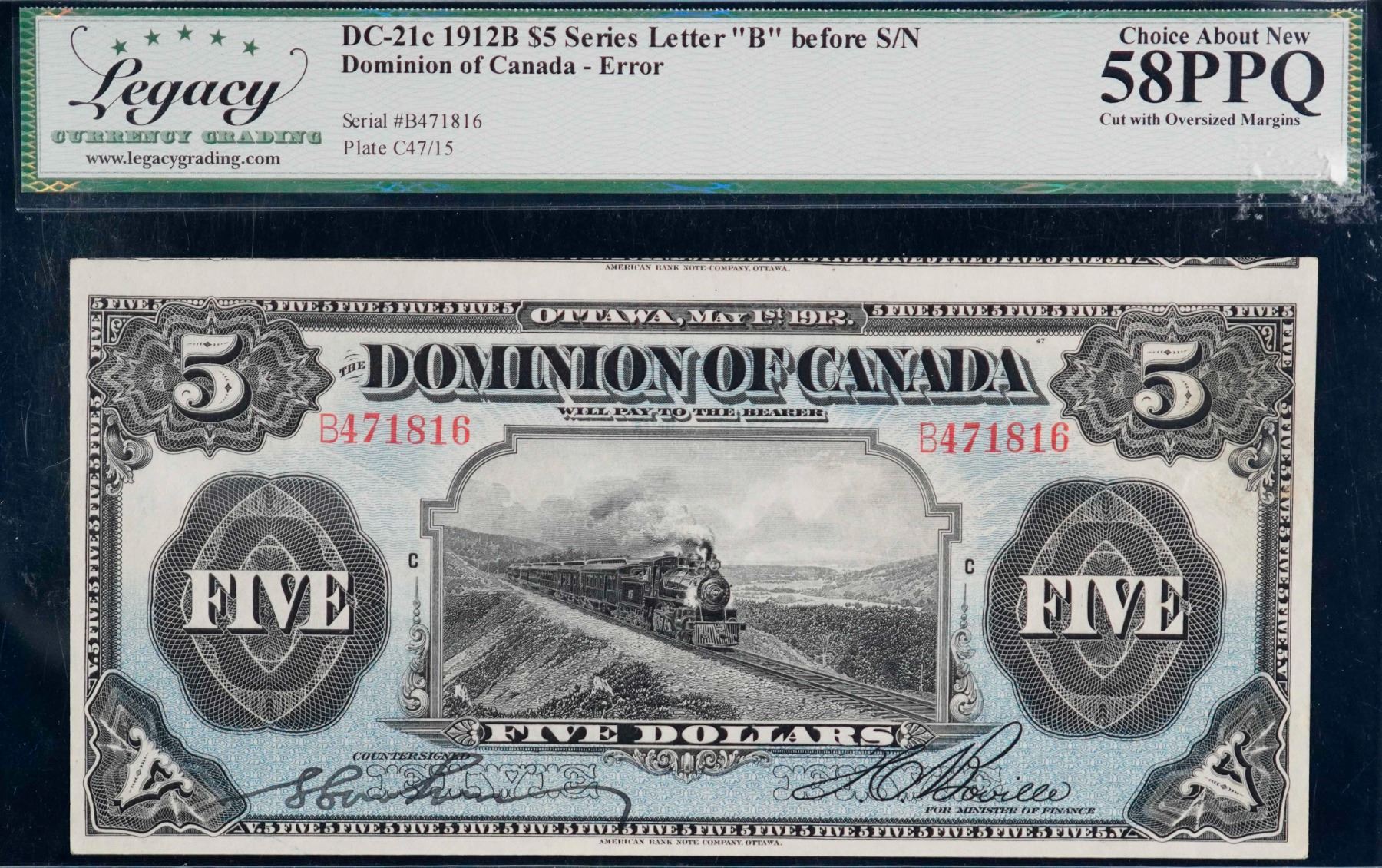 The cataloguer has taken every reasonable measure to ensure that all of the lots in this sale are as described and genuine. All raw coins and banknotes have been graded by the cataloger or the auction house which represent our best professional opinion. To grade coins and banknotes, we use Canadian grading standards, 42 years of experience and good conscience. However, grading is a subjective description in the opinion of the cataloger or the auction house. Among experts there are often differences of opinion on the grading and the eye appeal of a coin. The strike and the state of preservation are often debated. The Canadian Numismatic Company acts as an agent between consignors and buyers. The Canadian Numismatic Company does not guarantee that any coin or banknote cataloged will meet the standards, or the grade, of any third party grading companies. No warranty, whether impressed or implied. Items are as is, no warranty given. We cannot accept responsibility and waive all liability resulting in financial losses, and or incidentals accruing from the sale of any items, nor can we guarantee that items graded by third party services will grade the same if submitted to a different grading service or re-submitted to the same company. Statements by The Canadian Numismatic Company regarding the condition, the eye appeal, the strike and the population of items are for guidance only. All lots offered are sold "AS IS". Title to all lots remains with the auction house until paid for in full by the purchaser. But they are held at the risk of the purchaser once the time of the sale.