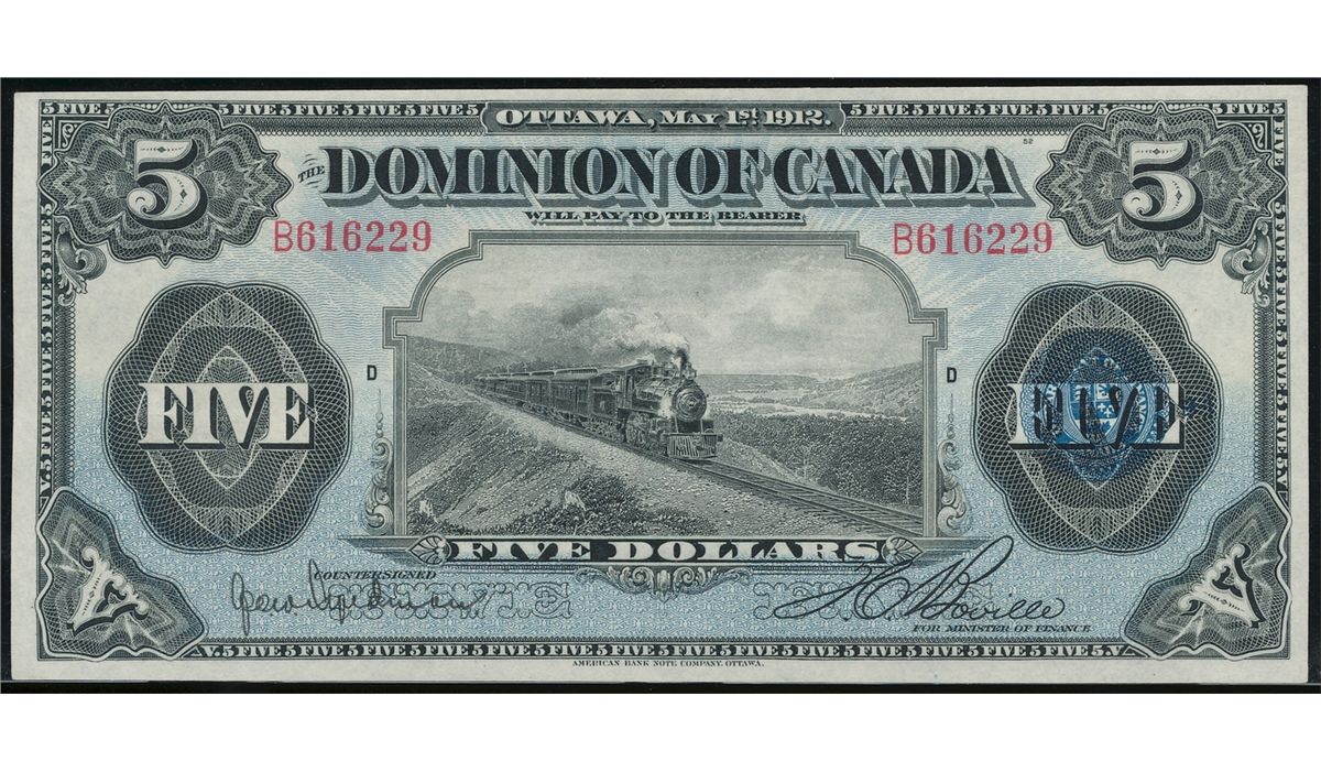 1912 $5 DC-21d #B616229, CCCS CH UNC63. Seal over Five. Scarce in this condition.
