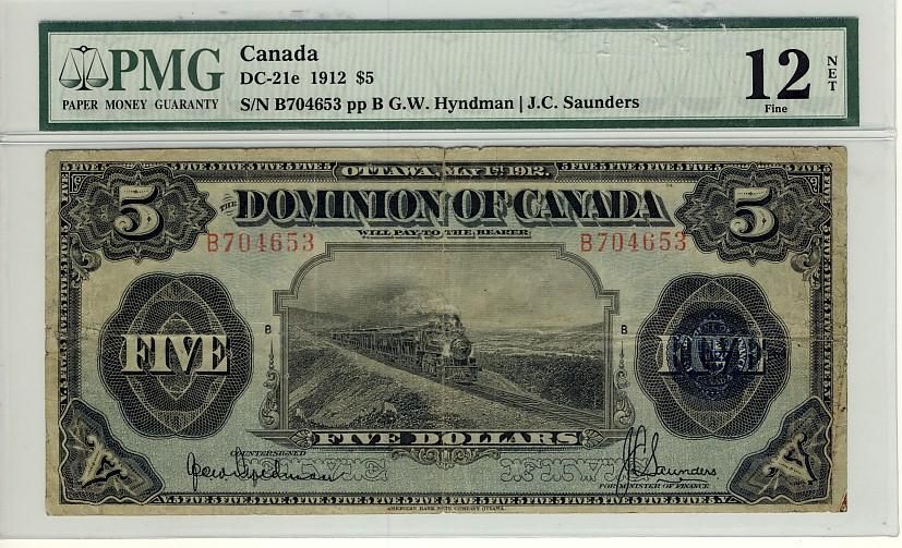 1912 $5 DC-21e #B704653 PMG F12 NET Splits