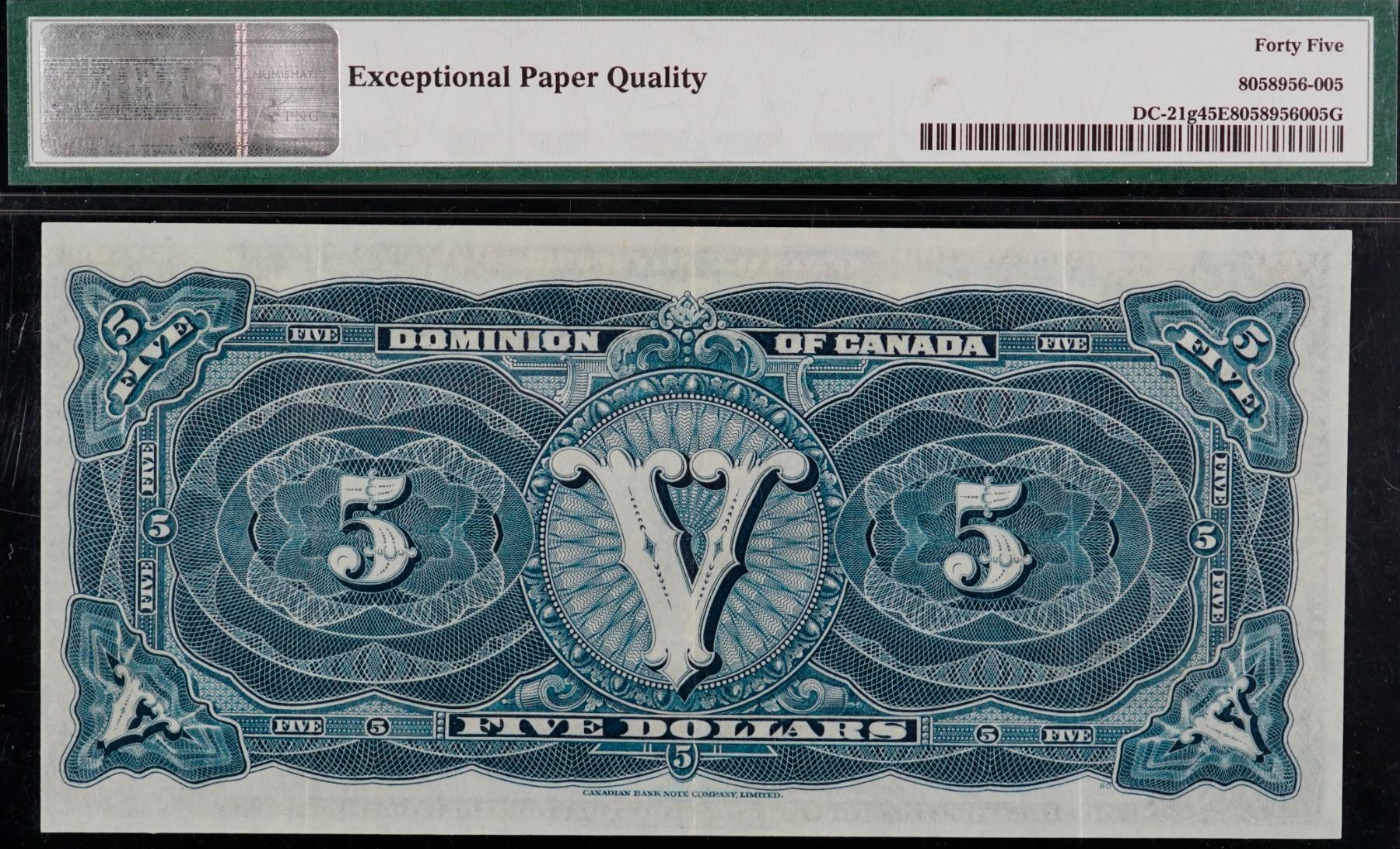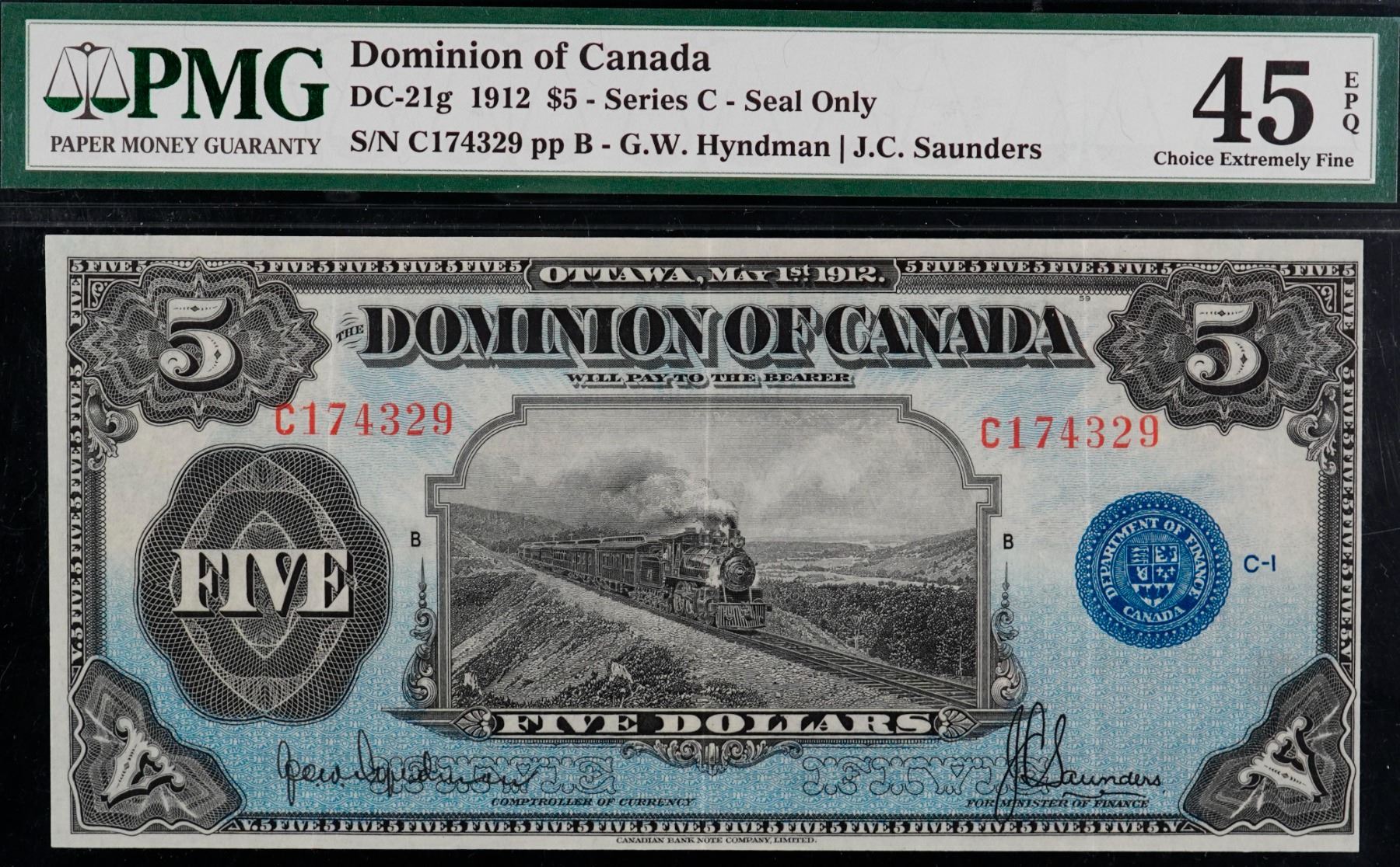 1912 $5 DC-21g #C174329 PMG Choice Extra Fine-45EPQ. Another bright and flashy example.
