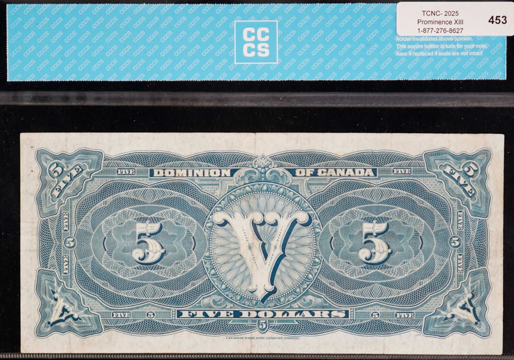 The cataloguer has taken every reasonable measure to ensure that all of the lots in this sale are as described and genuine. All raw coins and banknotes have been graded by the cataloger or the auction house which represent our best professional opinion. To grade coins and banknotes, we use Canadian grading standards, 42 years of experience and good conscience. However, grading is a subjective description in the opinion of the cataloger or the auction house. Among experts there are often differences of opinion on the grading and the eye appeal of a coin. The strike and the state of preservation are often debated. The Canadian Numismatic Company acts as an agent between consignors and buyers. The Canadian Numismatic Company does not guarantee that any coin or banknote cataloged will meet the standards, or the grade, of any third party grading companies. No warranty, whether impressed or implied. Items are as is, no warranty given. We cannot accept responsibility and waive all liability resulting in financial losses, and or incidentals accruing from the sale of any items, nor can we guarantee that items graded by third party services will grade the same if submitted to a different grading service or re-submitted to the same company. Statements by The Canadian Numismatic Company regarding the condition, the eye appeal, the strike and the population of items are for guidance only. All lots offered are sold "AS IS". Title to all lots remains with the auction house until paid for in full by the purchaser. But they are held at the risk of the purchaser once the time of the sale.