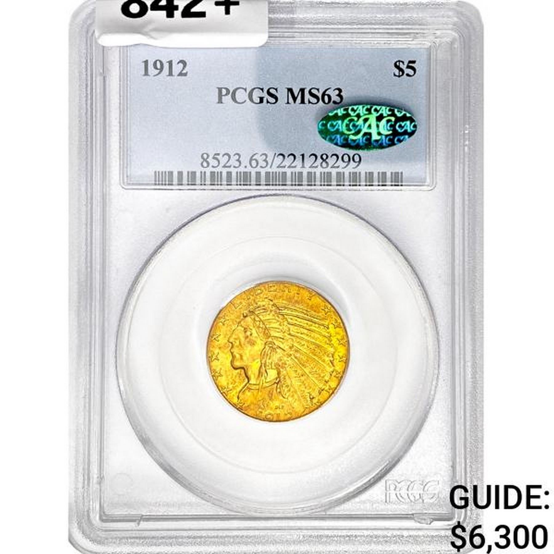 1912 $5 Gold Half Eagle PCGS MS63 CAC