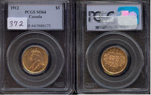 1912 $5 Gold ICCS MS64. A well struck example with full lustre. Nice type coin!