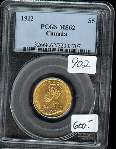 1912 $5 Gold PCGS MS62, well struck with nice lustre.