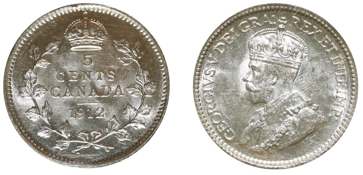 1912 5¢ ICCS Choice Mint State-63. Lustrous white.