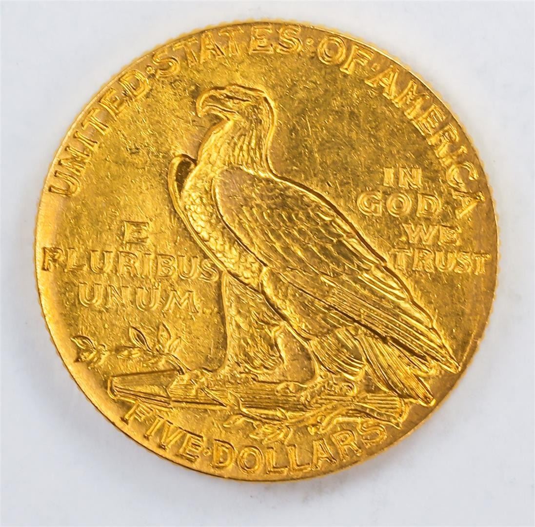 One 1912 $5 Indian Head Half Eagle Gold Coin CU.