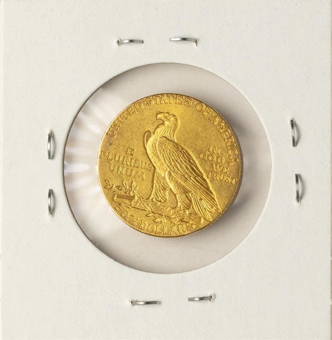 One 1912 $5 Indian Head Half Eagle Gold Coin.