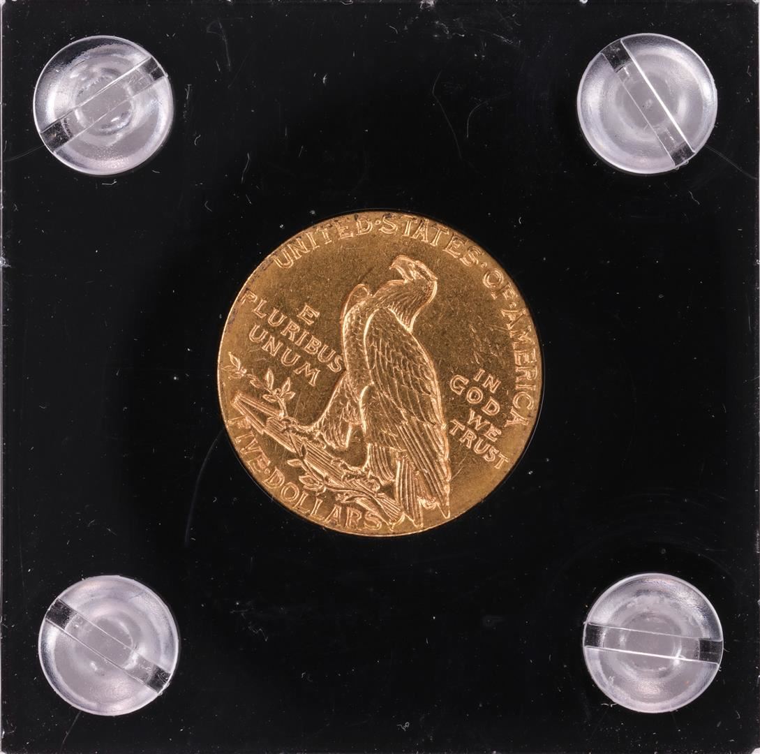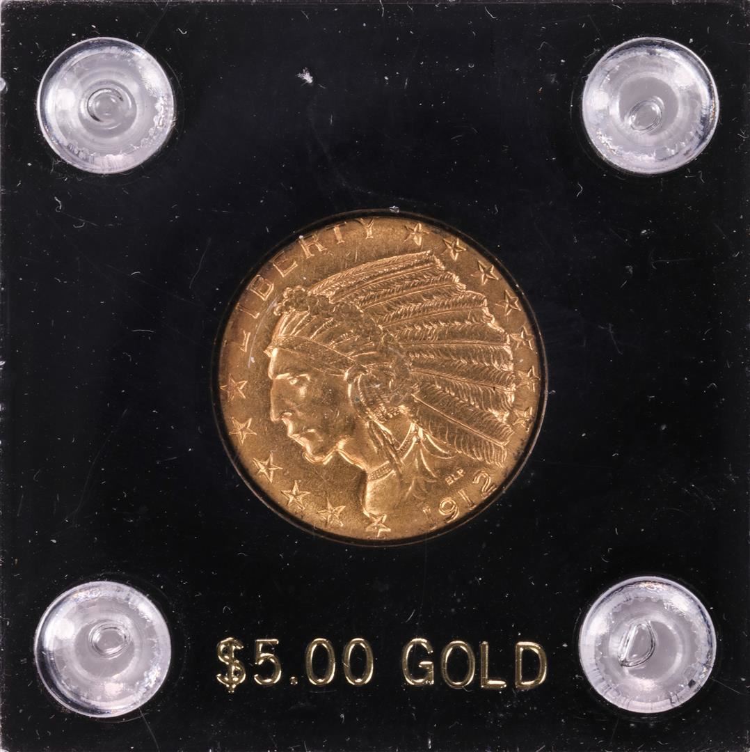One 1912 $5 Indian Head Half Eagle Gold Coin.