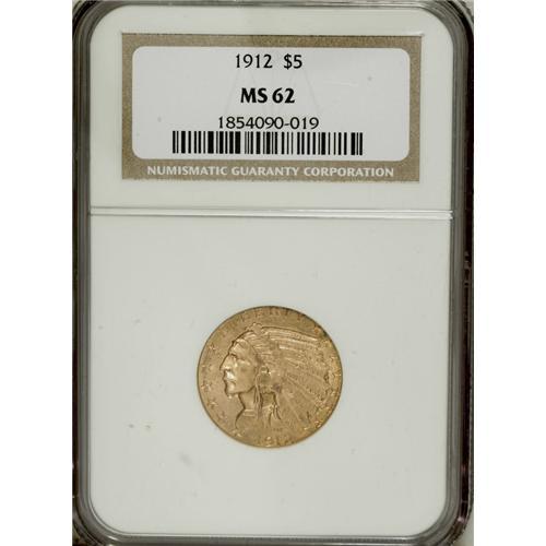 <B>1912 $5 MS62 NGC.</B></I> NGC Census: (2148/916). PCGS Population (1625/1240). Mintage: 790,000. Numismedia Wsl. Price: $1,175. (#8523)<BR><BR><b>Shipping:</b> Coins & Currency (<a target="_blank" href="http://www.heritageauctions.com/common/shipping.php">view shipping information</a>)