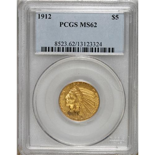 1912 $5 MS62 PCGS. This mid-date half eagle displays a