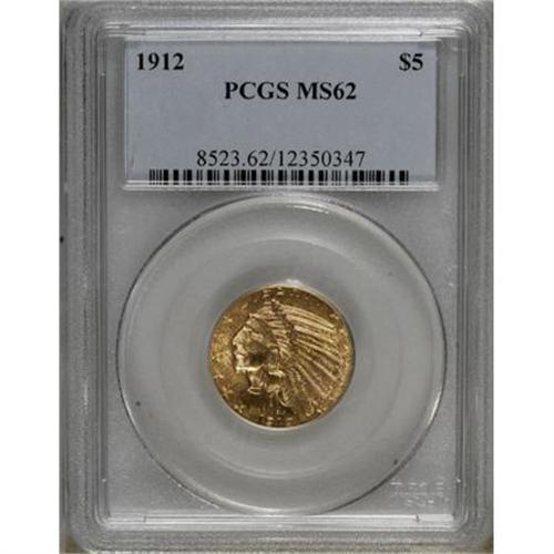 <B>1912 $5 MS62 PCGS.</B></I> PCGS Population (1891/1318). NGC Census: (2292/971). Mintage: 790,000. Numismedia Wsl. Price for NGC/PCGS coin in MS62: $1,025. (#8523)<BR><BR><B>Coin Engraver:</B> Bela Lyon Pratt<BR><BR><b>Shipping:</b> Coins & Currency (<a target="_blank" href="http://www.heritageauctions.com/common/shipping.php">view shipping information</a>)