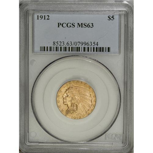 1912 $5 MS63 PCGS. Solidly struck and pleasing. The ye