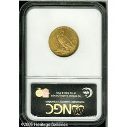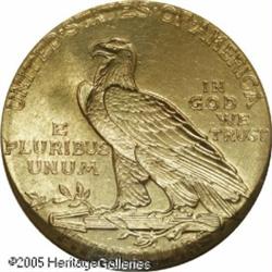 <B>1912 $5 MS65 NGC.</B></I> A no-questions Gem, both sides are ablaze with champagne-gold color that leaves no doubt about this coin's originality. Some Indian Half Eagles are softly struck over the central features, but not this expertly produced survivor. The feathers in the Indian's headdress, as well as the eagle's trailing wing feathers, are as crisp as one could expect for the type. Both sides are awash in mint frost. From an aesthetic standpoint, this coin is one of the most beautiful 1912 Half Eagles that we have ever offered, and, as alluded to above, the technical merits are equally impressive. Conditionally rare, as are all issues in this 20th century gold series. Population: 34 in 65, only 3 finer (1/05). Lot:8698