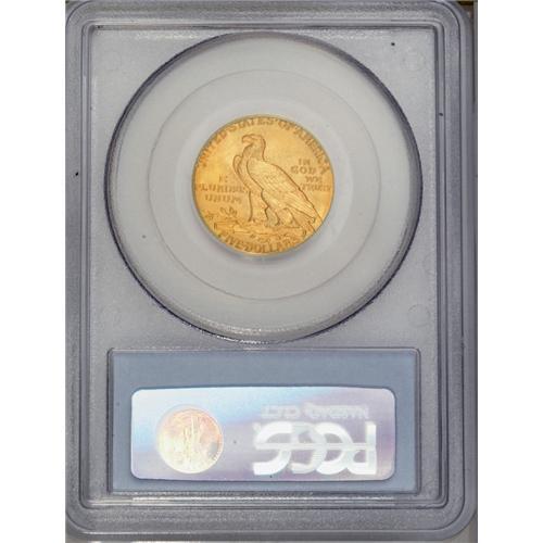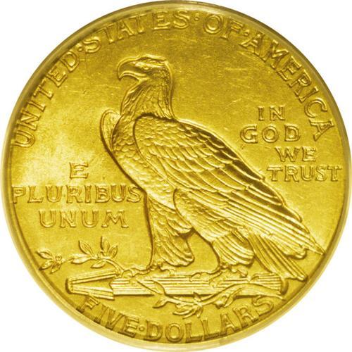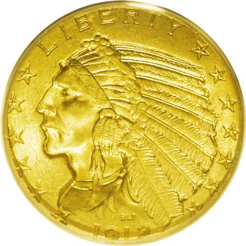 <B>1912<$5> MS65 PCGS.</B></I> The presence of multiple examples of Gem 1912 half eagles in this auction is certainly not a reflection on the availability of this issue in high grade. Rather, it is indicative of the superlative type coins that have been drawn to this important sale. The 1912 is a common date in the lower grades of Mint State, but examination of the population figures shows a dramatic lessening of availability in Gem condition. Probably no more than 55-60 Gems are known, once resubmissions are subtracted from the total number graded. This a fabulous coin. One expects the surfaces to be clean on an MS65 coin, and they certainly are, but what sets this piece apart from others is its fantastic reddish color with lilac undertones and softly frosted mint luster. Sharply defined throughout.
